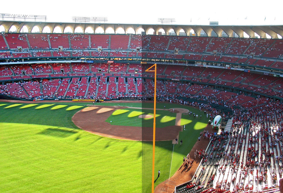 Figure 7-13 below shows a split screen example of the impact of the LABB algorithm for an image that includes dark areas.