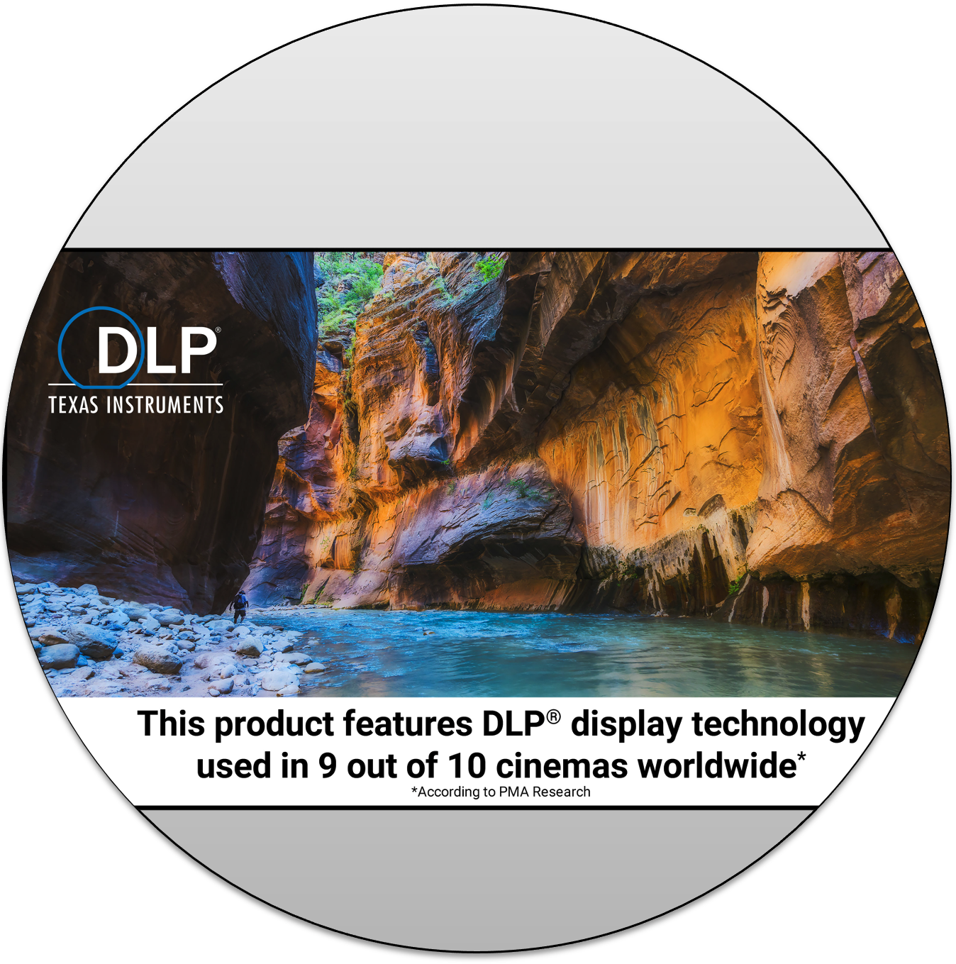 PMA Research에 따르면 전 세계 영화관 10곳 중 9곳에서 사용되고 있는 것과 동일한 디스플레이 기술을 바탕으로 한 DLP 칩셋은 높은 채도와 대비를 제공하는 디스플레이를 지원합니다. 디스플레이 시스템 성능은 광학 엔진에 따라 달라질 수 있습니다. |