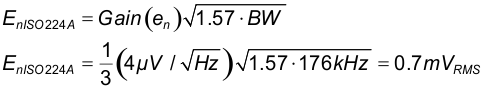 以下噪声计算仅考虑 ISO224 的噪声。ISO224 噪声远高于电路中其他噪声源的噪声,因此总噪声可以按 ISO224 噪声进行估算。对于 B 级也可使用同样的方法。