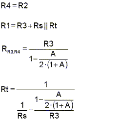 2. The input impedance of the stage reflects the active response of the amplifier combined with the values of R3 and R4. The design is not valid if the stage input impedance is less than the source resistance.